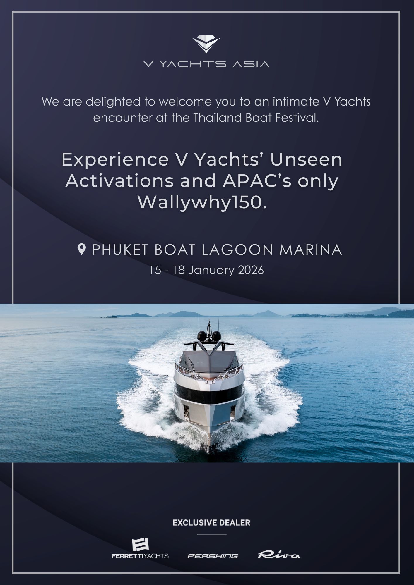 Across all touchpoints, V Yachts Asia aims to deliver a refined, welcoming, and future-focused experience that celebrates innovation, community, and the spirit of modern yachting.